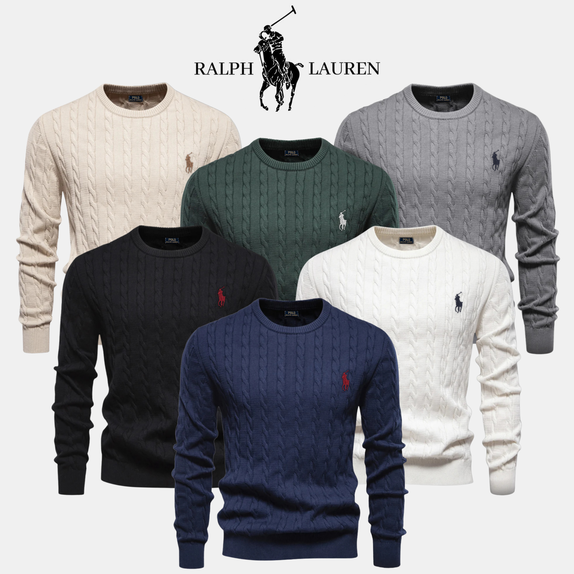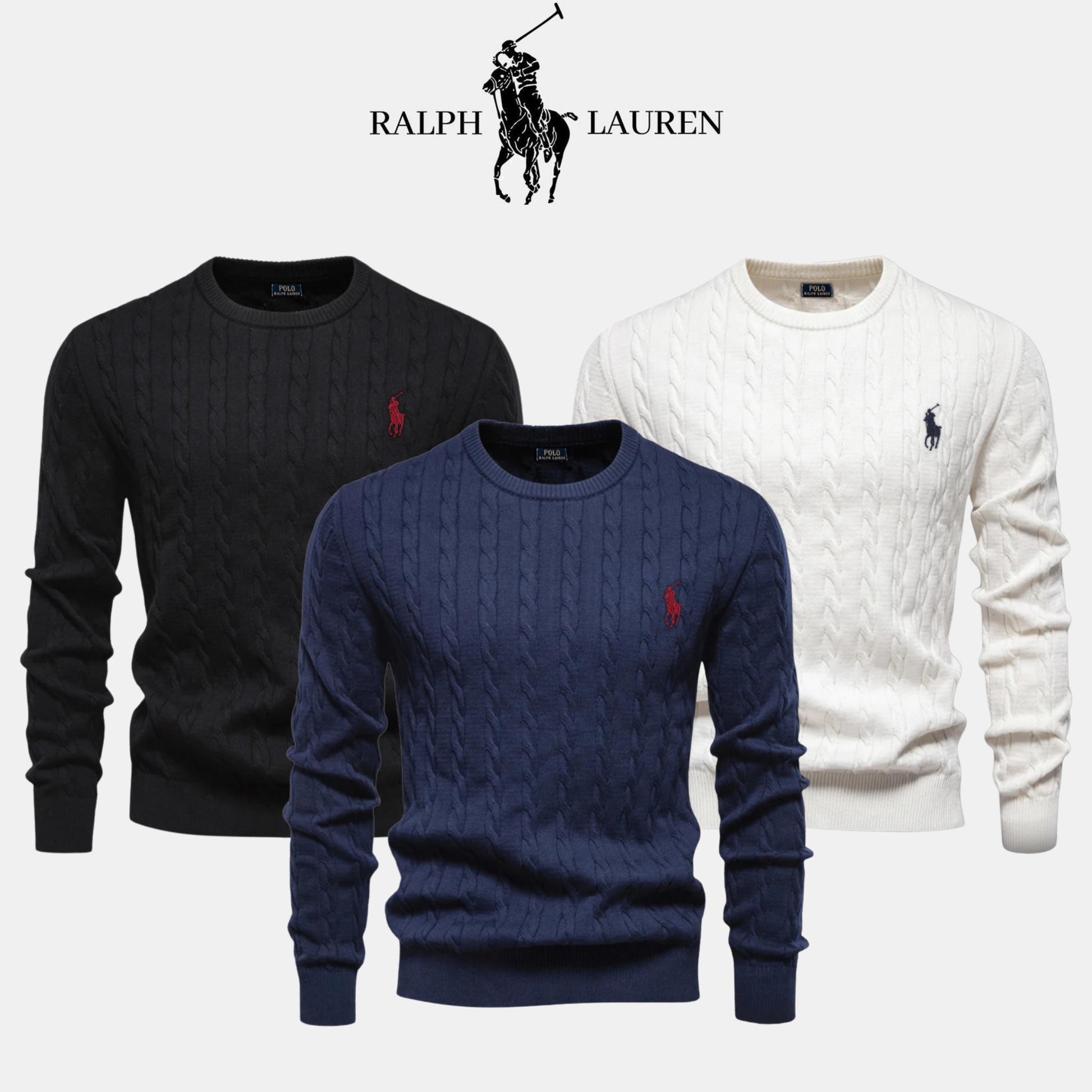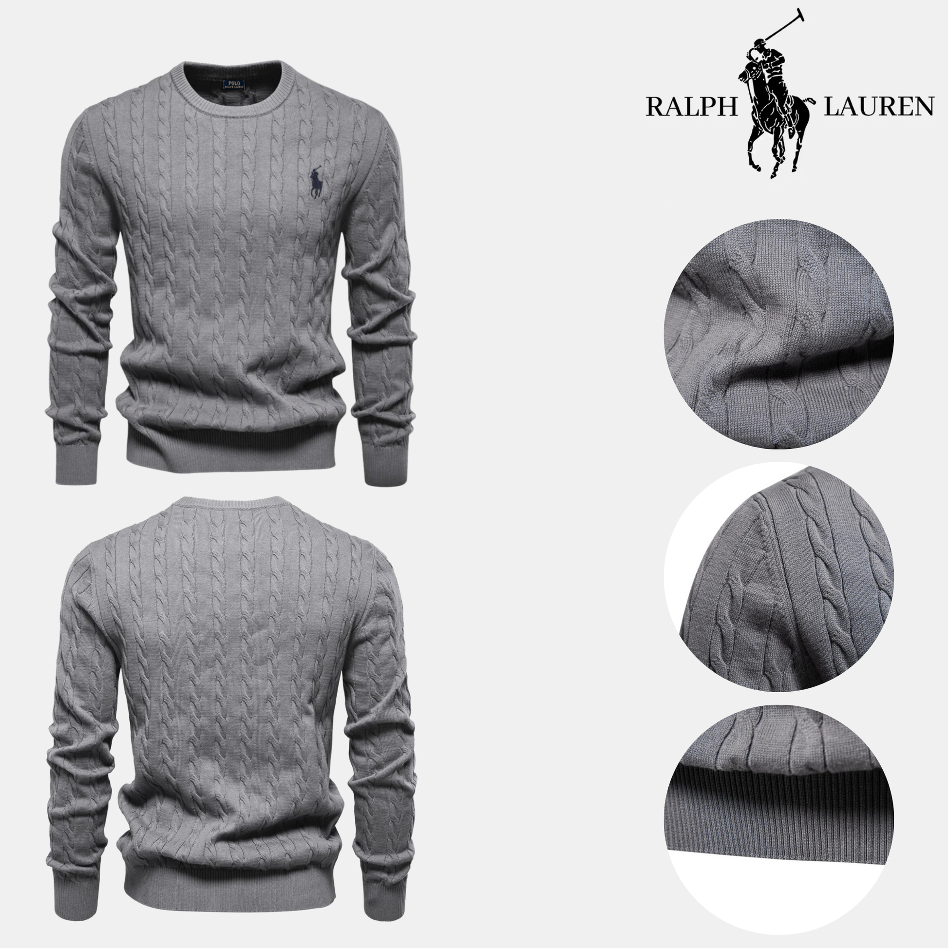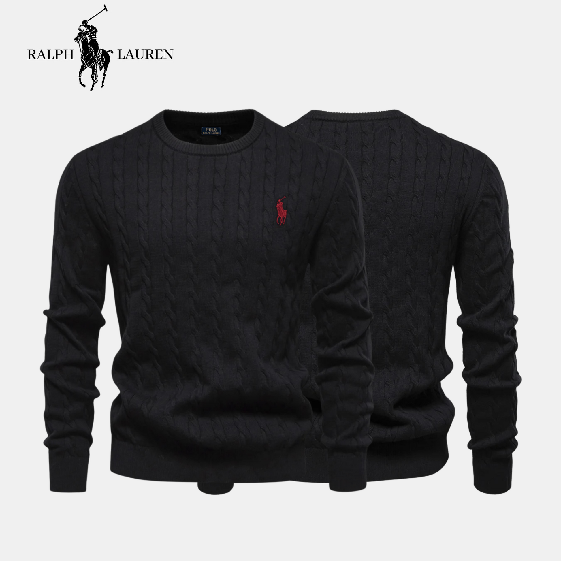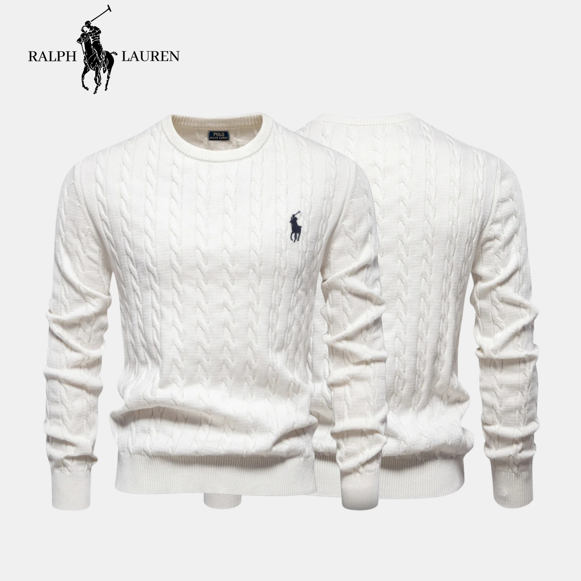 The embroidered R&L logo, the timeless cable-knit pattern, and the carefully finished crew-neck design highlight the quality and craftsmanship of this piece.